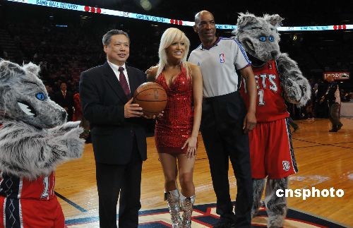 當(dāng)?shù)貢r間3月8日晚,美國大紐約地區(qū)“2009中華之夜”晚會在NBA新澤西網(wǎng)隊(duì)主場舉行,在NBA賽場吹出一陣“中國風(fēng)”,眾多美國球迷在觀看球賽之余,也飽覽了一場中華文化盛宴。圖為中國駐紐約總領(lǐng)事彭克玉在演出現(xiàn)場。中新社發(fā) 魏晞 攝