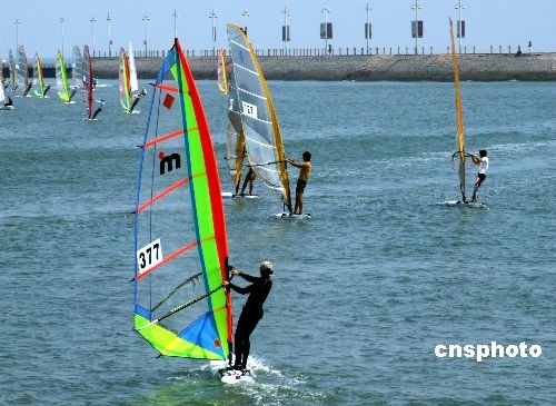 5月7日上午10時(shí),中國(guó)第十一屆全國(guó)運(yùn)動(dòng)會(huì)帆板預(yù)賽在山東省日照市萬(wàn)平口海域拉開戰(zhàn)幕,來(lái)自全國(guó)16個(gè)省、市及解放軍代表隊(duì)的200多名運(yùn)動(dòng)員、教練員、領(lǐng)隊(duì)、裁判員參加帆板預(yù)賽的比賽。此次預(yù)賽將產(chǎn)生今年10月份舉行的決賽的30個(gè)名額。中新社發(fā) 林德強(qiáng) 攝