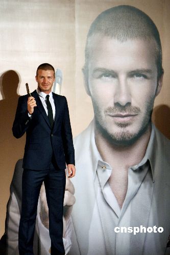 2007年11月24日,在北京嘉里中心,摩托羅拉發布MOTO RAZR V8黃金典藏版手機。貝克漢姆(David Beckham)作為其全球品牌形象大使來華展示他的最新時尚裝備。中新社發 袁方 攝