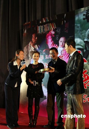 12月17日晚,《大電影2.0》在北京舉行首映式。首映結束后,該片導演阿甘攜郭濤等主要演員與影迷見面。12月17日正值郭濤生日,活動主辦方為郭濤準備了一份特別的生日禮物——首映式的全部入場券票根、一張觀影貴賓卡和一格《大電影2.0》的膠片。中新社發 王昊 攝