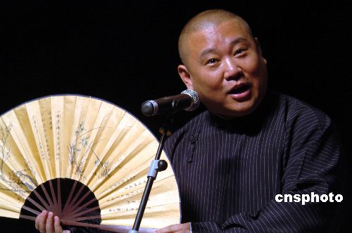 2008年1月13日晚,郭德綱率德云社在深圳體育館送上“德云社深圳新春相聲晚會”。郭德綱和于謙搭檔帶來多個新段子,其中《誰動了我的減肥茶》、《警察故事》、《文學家》等作品,大抖“連環包袱”,讓數千名觀眾大飽耳福。中新社發 吳峻 攝