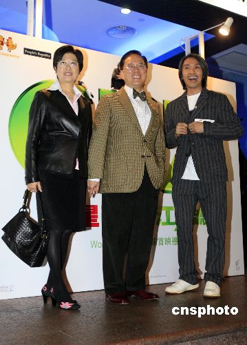 一月二十三日晚,周星馳身兼導演、編劇、演員,歷時三年打造的電影《長江七號》在香港舉行全球首映禮,百位政界、商界、演藝界嘉賓出席觀看。特首曾蔭權夫婦也出席首映禮,支持香港創意工業。中新社發 王麗南 攝