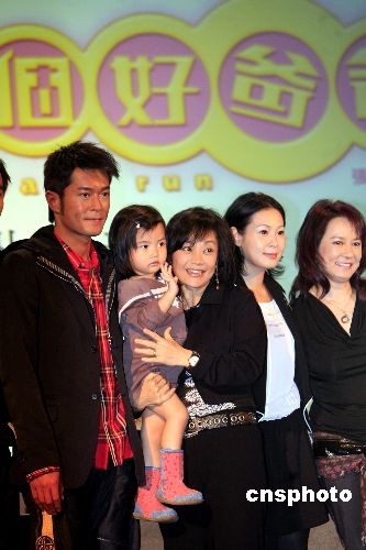 香港國際影視展參展影片《一個好爸爸》三月二十日舉行新聞發(fā)布會,該片由成龍監(jiān)制,張艾嘉導演(左三)、香港演員古天樂(左一)、臺灣演員劉若英(右二)主演。影片將于四月十日全球公映。圖為劇中主要演員出席發(fā)布會。中新社發(fā) 王麗南 攝