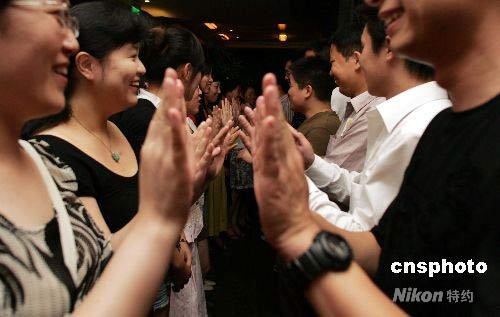 7月19日,眾多北京青年在集體相親會(huì)上拍手互動(dòng),在活動(dòng)中尋找自己的愛情。參加此次活動(dòng)的單身青年大多來自某婚戀網(wǎng)站,很多參加相親活動(dòng)的年輕人表示,對(duì)于自己理想伴侶的要求更多的是希望相互性格、志向、情趣相投。借助婚戀網(wǎng)站平臺(tái)線上線下活動(dòng)去尋找物質(zhì)生活和精神生活完美統(tǒng)一的伴侶。就像徐志摩的詩(shī),“我將在茫茫人海中尋訪我唯一之靈魂伴侶。得之,我幸;不得,我命。”一位參加活動(dòng)的年輕人笑談,如果徐志摩生活在當(dāng)下,一定也會(huì)通過婚戀網(wǎng)找到自己“唯一之靈魂伴侶”的。中新社發(fā) 楊可佳 攝
