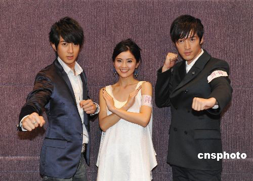 10月9日,馬楚成最新功夫愛情巨制《劍蝶》上映在即,主演吳尊、阿Sa、胡歌以及武術(shù)指導(dǎo)程小東專程趕到北京,與導(dǎo)演馬楚成一同接受各大媒體專訪。初次亮相電影銀幕的吳尊與阿Sa首次攜手,馬楚成對他們的表現(xiàn)贊不絕口,更是給出了“前途無限”的評價。而《劍蝶》對胡歌也有著特殊的意義,這是他車禍?zhǔn)軅笫状纬鲅莸淖髌贰?jù)了解,《劍蝶》將于10月16日在全國上映。 中新社發(fā) 李學(xué)仕 攝