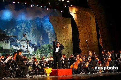 11月13日晚,著名智障音樂指揮家舟舟在拉薩民族文化藝術宮憑著對音樂的天賦感悟和高超的指揮藝術將觀眾帶進神圣的音樂殿堂。身著黑色燕尾服的舟舟激情四溢的揮舞著指揮棒,劃出優美的弧線、打著鮮明的拍點,再輔以豐富的表情,指揮西藏愛樂樂團的樂手們將《卡門序曲》、《拉德斯基進行曲》、《匈牙利舞曲》等世界經典名曲演繹出令人心醉神迷的優美旋律。中新社發 那勇順 攝