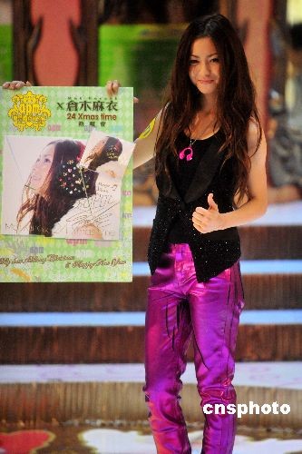 卡通片《名偵探柯南》的原唱者日本樂壇小天后倉木麻衣,二十五日在香港出席商場舉行的新碟《24 Xmas time》簽唱會。中新社發(fā) 譚達明 攝