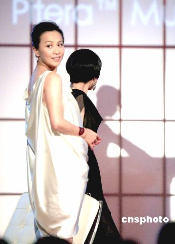一月十三日,日本女星桃井薰、香港藝人劉嘉玲、琦琦、李心潔共同為某品牌展覽活動主持揭幕儀式。中新社發 張勤 攝