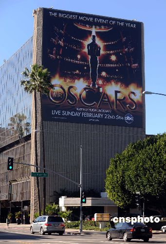 第八十一屆奧斯卡電影金像獎官方海報一月二十九日正式公布,一幅巨型官方海報懸掛在位于好萊塢的美國電影藝術(shù)與科學學院大樓外。海報以黑色與金色為基調(diào),以奧斯卡頒獎現(xiàn)場“柯達劇院”的舞臺作為主要背景,“小金人”的剪影在金色光芒的映襯下顯得莊重而大氣。中新社發(fā) 張煒 攝