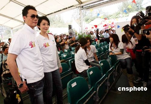 三月十七日,香港藝人謝天華與湯盈盈在維園出席無線電視舉辦的“香港最佳選舉”活動被媒體追訪。日前,謝天華、湯盈盈分別因酒后駕駛及不小心駕駛罪,被判停牌及罰款。中新社發 洪少葵 攝