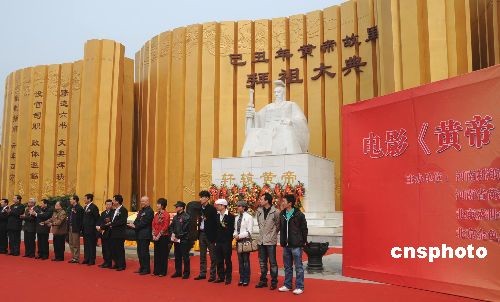 三月二十八日上午,大型史詩電影《黃帝》在河南新鄭黃帝故里舉行啟動儀式。該片將以黃帝統(tǒng)一萬國,開創(chuàng)基業(yè),創(chuàng)制律歷,發(fā)明文字,植桑養(yǎng)蠶,研究醫(yī)學等生平、生活和思想為藍本,向世人講述黃帝與自然、社會、人的交往、斗爭,進而和諧相處的歷程,講述一個民族英雄的成長故事,一個中華始祖不屈不撓與命運抗爭的歷史。中新社發(fā) 史寶銀 攝