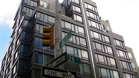 扁家在5樓邊間,一邊靠第八大道,一邊靠西28街,大廈門口在西28街上。西28街是一條只有一線的單行道,第八大道則車水馬龍,地面層樓正在裝璜出租做為商店。大廈的一樓大廳不大,但墻上的浮雕凸顯非凡氣質。