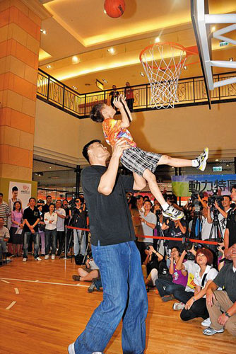 中新網(wǎng)7月27日日電 據(jù)臺灣《中國時(shí)報(bào)》報(bào)道,“謝謝姚明哥哥來看我們!”NBA球星姚明訪臺做公益,26日前往高雄的義大世界,與百余名八八水災(zāi)學(xué)童及初中籃球隊(duì)員相見歡。學(xué)生開心拿起相機(jī)猛拍,當(dāng)面向他請教球技,為暑假留下美好回憶。