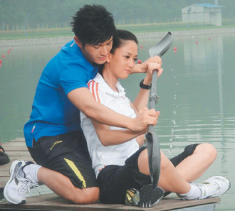 據悉,29日拍攝的陳喬恩和黃曉明的吻戲,是發生在搖晃的劃艇上,兩人不小心親到又分開,但黃曉明隨即補上深情之吻。雖然戲外他們不熟,導演梁柏堅卻認為,這樣正適合拍他們開始交往的感覺。