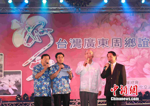 中新社新竹8月18日電 (記者 張傳熙)兩岸一家親,客家情亦濃。廣東省省長黃華華、中國國民黨榮譽主席吳伯雄18日晚在臺灣客屬聚居地——新竹縣聯袂登臺獻唱。他們高歌一曲《客家本色》,受到出席晚宴的數百名當地鄉親和嘉賓的熱烈鼓掌與喝彩。