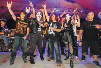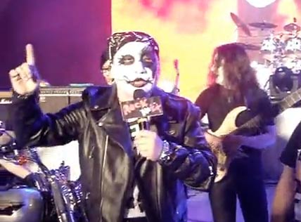 昨晚活動(dòng)記者會(huì),由春吶創(chuàng)辦人Wade所組、來(lái)自蘇格蘭的Aurora樂團(tuán)開場(chǎng),接著是由團(tuán)員全化上嚇人尸妝的“搖滾臺(tái)中金屬魂”咆哮震撼登場(chǎng),演唱由在地金屬10團(tuán)共同創(chuàng)作的主題曲“搖滾臺(tái)中”。隆隆重金屬樂聲中,胡志強(qiáng)化身?yè)u滾客、跨坐百萬(wàn)哈雷摩托車現(xiàn)身。