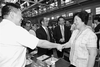 “書記、省長好!”在機械洽談區,省委書記孫春蘭與省長黃小晶一出現,正在洽談的臺商就不約而同地鼓起掌來。他們熱情地迎上前,七嘴八舌地介紹起自己帶來的招商項目。臺灣張鐵工廠股份有限公司董事長張清雄來自臺中,已在福建設廠。他對洽談會興趣濃厚。“多投資,很好。這樣產業能夠群聚。”孫春蘭微笑著對張清雄說。張清雄頻頻點頭。