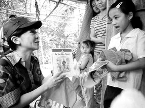 8 月底,島內作家吳淡如來到越南探望了自己認養的女孩阮垂銀。據悉,正在念小學三年級的阮垂銀有一個小兩歲的妹妹,父親是木工,但因病無法工作,全家就靠媽媽編斗笠、賣魚,每天賺1.6 美元維持生活。阮垂銀一家住在約3.3 平方米大的鐵皮屋里,晚上共擠一張木床。吳淡如到訪時當地正下大雨,阮垂銀家到處漏雨,由于屋內沒有灶臺,她淋著雨在石頭搭成的爐子上給來客燒開水泡茶。