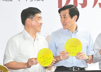 郝龍斌表示,臺北市設(shè)市九十年時,剛好要辦國際花卉博覽會,不僅可展現(xiàn)臺灣花卉實(shí)力,更要展現(xiàn)環(huán)保綠能科技,在國際間打響知名度,花博期間七千多場的藝文活動,也讓國際看到臺北的文創(chuàng)實(shí)力。隨后他寫下“對的事堅(jiān)持做,臺北會飛得更高、更遠(yuǎn)”的祈福文字。