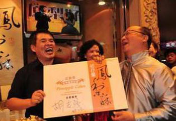 中新網10月8日電 據臺灣“今日新聞網”報道,臺灣臺中市長參選人胡志強七日晚間前往大甲鎮裕珍馨餅店,為該店獲得“2010愛上臺中菠蘿好酥金賞獎”的鳳梨酥代言。胡志強強調,只要大家一起努力把產品做好,他愿意負責把臺中好的產品營銷到全世界,讓大家賺大錢。