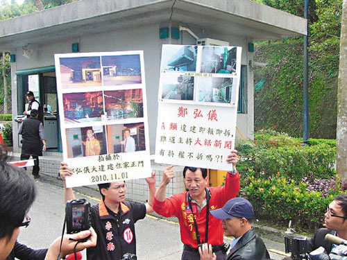 中新網11月3日電 據臺灣《聯合報》報道,臺灣政論節目親綠營的主持人鄭弘儀位于新店市青山鎮社區的兩層樓別墅,涉嫌未依法申請即加蓋違建,臺北縣議員金介壽、李肇南2日前往會勘,社區保全員以“私人土地”攔阻,一度與議員爆發推擠沖突。