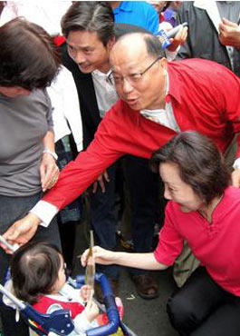中新網11月11日電 據“中央社”報道,國民黨臺中市長候選人胡志強11日起請假投入選舉,首場活動即到臺中市北屯區金谷市場拜票,國民黨秘書長金溥聰特別陪同,市場內“凍蒜(當選)”聲不絕于耳。