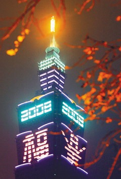 圖:臺北市101大樓亮出"春"、"福"向市民拜年