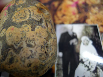 黃清雨12年來?yè)焓捌媸惸緸闃罚⒁灰粠Щ貙⒂跋裢高^計(jì)算機(jī)放大解析,解讀奇石圖騰,最近他整理奇石計(jì)算機(jī)檔案圖像,發(fā)現(xiàn)其中一顆小石頭,浮現(xiàn)酷似宋美齡婚紗照,渾然天成。