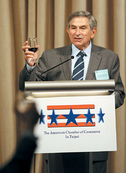 中新網(wǎng)7月24日電 美臺商會新任理事主席沃爾福威茨(Paul D.Wolfowitz)昨日表示,臺灣下一個挑戰(zhàn)是將經(jīng)濟(jì)發(fā)展帶向更高的領(lǐng)域,如何讓臺灣成為適合經(jīng)商的環(huán)境,是臺灣須努力方向;他除了主張臺灣應(yīng)將電力與能源產(chǎn)業(yè)自由化外,也希望兩岸能讓美國航空業(yè)也加入兩岸包機(jī)航線經(jīng)營。
