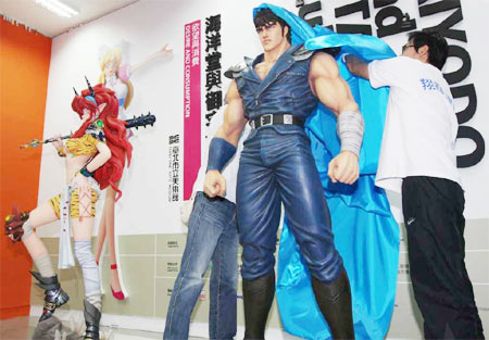 中新網(wǎng)11月14日電 據(jù)臺(tái)灣《中國(guó)時(shí)報(bào)》報(bào)道,臺(tái)北市立美術(shù)館將于十六日舉辦“欲望與消費(fèi)——海洋堂與御宅族文化展”,預(yù)計(jì)將展出三千件大中小型動(dòng)漫模型。圖為與真人一樣大的模型——北斗神拳的帥氣男主角“拳四郎”。