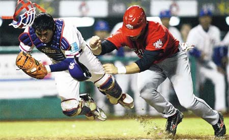 中新網3月11日電 北京奧運棒球資格賽昨晚迎來中國臺北隊與加拿大隊之戰,由于攸關兩隊名次,比賽過程充滿火藥味與緊張氣氛?上е袊_北隊沒能守住最后關卡,九局上被加隊追平后,延長賽十局上再失一分,終場以五比六吞下首敗。