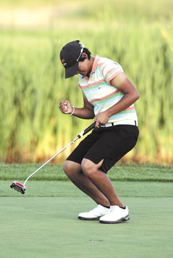 曾雅妮在LPGA錦標賽延長驟死賽擊敗對手霍斯奪得冠軍,神情相當興奮。(圖:臺灣《中國時報》)
