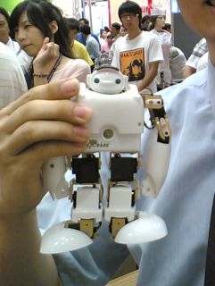 今年機器人展上,服務型機器人不斷推陳出新。全世界最小商品化的人形機器人BeRobot首次亮相,高度只有15厘米,可以無線遙控或是聲控。BeRobot有65000多種動作,跳舞、伏地挺身甚至打太極拳都難不倒,還可以變身為電子寵物。