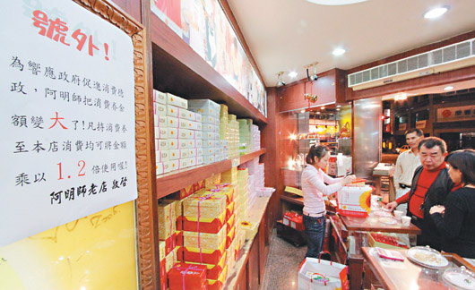 中新網(wǎng)11月19日電 據(jù)臺灣《聯(lián)合報(bào)》報(bào)道,為刺激消費(fèi),臺當(dāng)局將發(fā)放每人三千六百元(新臺幣,下同)的消費(fèi)券,迎接高達(dá)八百五十億元的消費(fèi)券商機(jī),包括零售、超商、量販、餐飲等業(yè)者樂翻了,都把消費(fèi)券視為今年和明年的營銷重點(diǎn),紛紛摩拳擦掌規(guī)劃各種促銷方案。