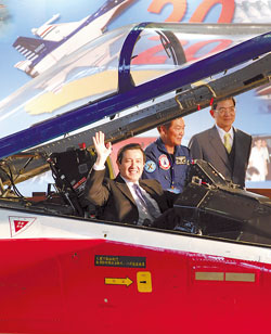 馬英九12月28日首度試乘20年前出廠的編號10001“經(jīng)國號”戰(zhàn)機(jī)。(來源:臺灣《中國時(shí)報(bào)》)