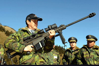 馬英九14日前往合歡山武嶺視察臺(tái)灣陸軍特訓(xùn)中心武嶺寒訓(xùn)基地,慰問受訓(xùn)士兵并參觀特訓(xùn)中心各式雪地狙擊所使用的特殊裝備。