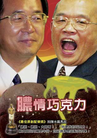 臺(tái)“全民麻辣鍋”網(wǎng)站最近開設(shè)了“2005至2007臺(tái)灣奧卡斯獎(jiǎng)——民進(jìn)黨執(zhí)政之荒謬劇場”票選活動(dòng),以反諷、笑中帶淚的方式為民進(jìn)黨“執(zhí)政”頒獎(jiǎng)。民進(jìn)黨4大天王及扁妻皆成為臺(tái)灣民眾惡搞對象,通通上榜,并奪得各項(xiàng)大獎(jiǎng)。