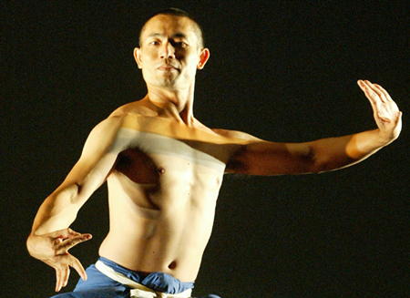 《男人跳舞》登上臺北舞臺,從父親的關系、女性特質、暴力、變身及性別等主題出發,剖析多變與復雜的男性認同議題。圖為獨舞的泰國古典面具舞者皮歇•克朗淳。記者林秀明/攝影