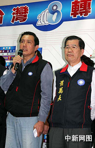 馬英九、蕭萬長并肩出席國民黨中央黨部“立委”選舉結果記者會。 作 者:孫自法