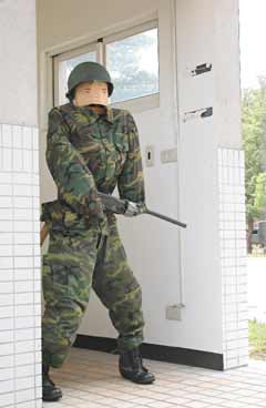 軍方說,假衛(wèi)兵的用意是欺敵,實(shí)際的兵力、火力都隱藏在營區(qū)內(nèi),萬一有人硬闖或企圖潛入時(shí),營區(qū)警衛(wèi)連會立即指揮調(diào)派兵力,三分鐘內(nèi)即可趕抵側(cè)門。