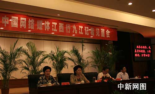 中新網10月20日電 參加“第五屆中國網絡媒體江西行”的采訪團成員20日抵達九江市,圖為記者見面會現場。九江是江西的“北大門”,是國家第一批五個沿江開放城市之一。九江歷史文化悠久、區位交通優越、自然資源豐富。