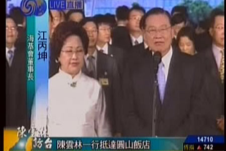 江丙坤也特別向陳會長提出來,這里有很多熱情的好客的臺灣的民眾,他們的心聲,相信他會聽得到。他并再度地表示歡迎,也希望這一次的協商順利成功。