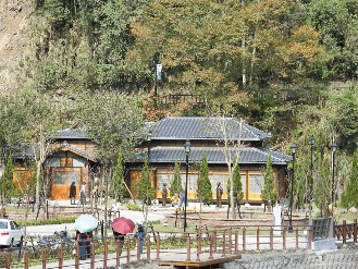這棟伴張學(xué)良度過(guò)13年山居歲月的平房,40多年前因臺(tái)風(fēng)來(lái)襲沖毀,舊址位于河道行水區(qū),因此重建于比原址地勢(shì)更高的地方。在張學(xué)良侄女張閭蘅、張閭芝姐妹,提供500多張老照片勾勒下,建物仿日式黑瓦房舍,打造昔日原貌,讓游客追憶當(dāng)時(shí)的幽居生活。