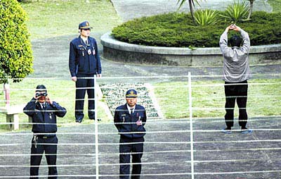 扁放風(fēng)時,故意背對媒體做體操,管理員也對媒體進(jìn)行監(jiān)看。