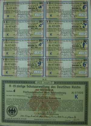 臺北市的蘇文朗,當年祖父是士林紙廠的干部,他五歲時,曾看過祖父拿出兩張鈔票大小的“彩色紙片”用來包煙草。當時他好奇地纏著祖父問,這些“圖畫紙”是哪里來的。祖父抽了一口煙,緩緩地說:“這不是圖畫紙,是外國錢。”原來祖父當年奉命要以馬克債券作為紙廠員工工資,但心軟的祖父預感這些“外國錢”兌換無門,因此家境富裕的他,干脆自掏腰包發薪水,而這些馬克債券就成了祖父嘴邊的彩色煙卷。
