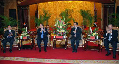 國民黨中常委蔣孝嚴亦題寫賀詞:“功績卓著”,贊揚泉州臺商協會十二年來所取得的成績。而全國臺企聯會長張漢文更親率全國各地百余臺企會長及代表蒞會祝賀,并在慶典上號召廣大臺商朋友明年3月回臺灣投上自己莊嚴的一票。