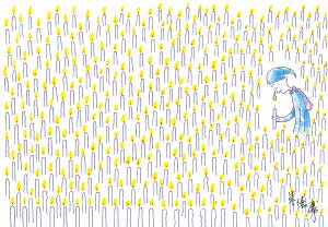 今早起來呆坐在書桌前,本想試著畫畫平日該畫的圖,但拿起筆后卻畫出了這幅。這圖也許有意義也許沒意義,我想我的感受恐怕不及災區朋友們的千萬分之一吧。人雖在臺灣,但心和你們在一起。