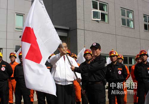 搜救隊今天上午八點三十分由市長郝龍斌及臺灣紅十字組織會長陳長文授旗,下午啟程。至于搜救隊將至哪一個地方救援,要等到了成都后,由當地的救援主管單位分派,搜救隊準備約七天份的干糧及飲水。
