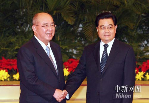 很高興有機(jī)會(huì)再次相聚,首先我代表中共中央對(duì)中國(guó)國(guó)民黨中央委員會(huì)主席吳伯雄先生率團(tuán)來訪表示熱烈歡迎,吳伯雄主席首次以國(guó)民黨主席的身份率團(tuán)來訪,這是新形勢(shì)下國(guó)共兩黨關(guān)系和兩岸關(guān)系當(dāng)中的一件大事,我希望,我們能夠在國(guó)共兩黨以往多次交流、對(duì)話的基礎(chǔ)上,就新形勢(shì)下促進(jìn)兩岸關(guān)系的改善和發(fā)展深入交換意見,共同面向未來,努力推動(dòng)兩岸關(guān)系的和平發(fā)展。