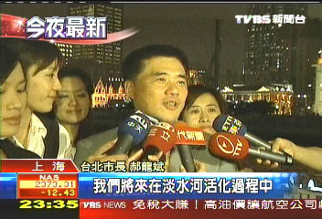當晚外灘鐘聲敲過8點15分,臺北市長郝龍斌暌違上海3年,再度登船游黃浦江。報道說,端出臺灣荔枝招待,上海市安排的游船,連戰(zhàn)夫婦、宋楚瑜夫婦都坐過,為了郝龍斌一行人安全游江,還派出巡邏艇來回護航。郝龍斌聽著導(dǎo)游介紹外灘的萬國建筑,想的是怎么把外灘移植到臺北的藍色公路。